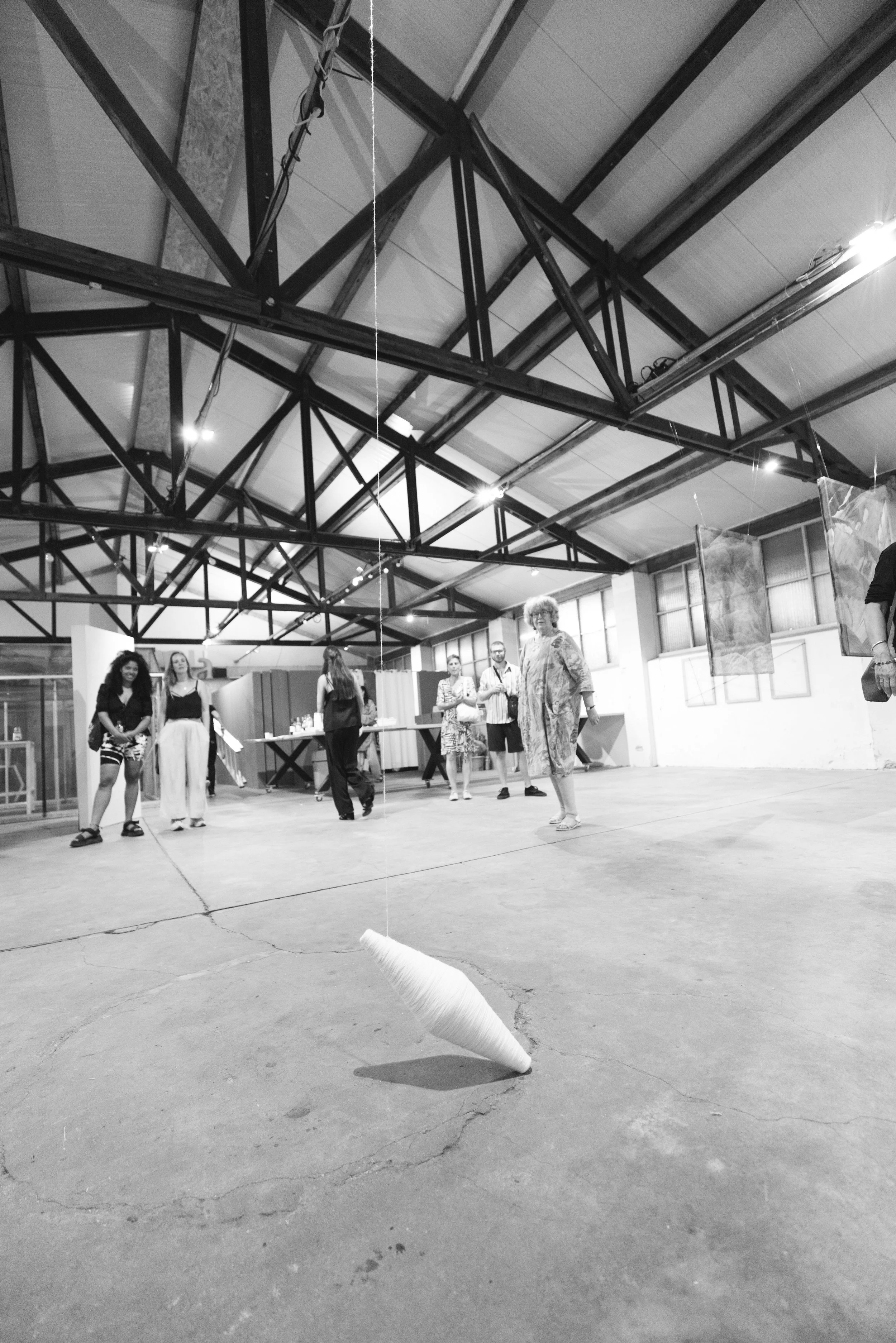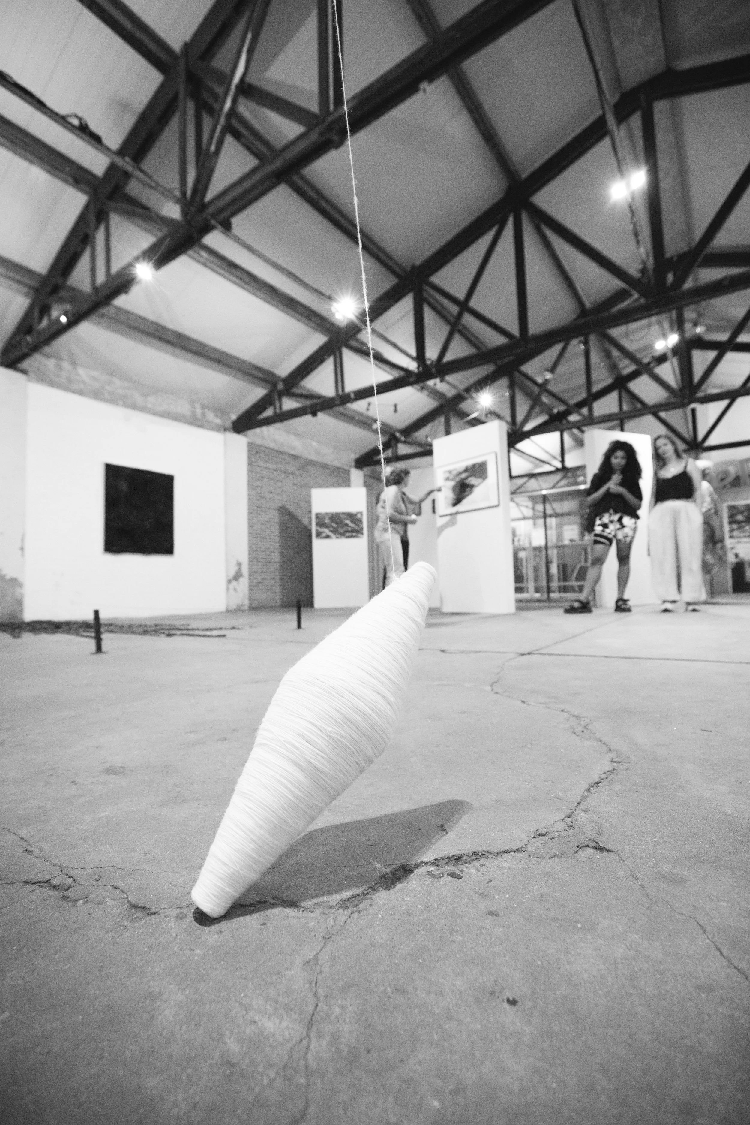A rotating sculpture held aloft by a single thread. Each spin is unique, tracing the unpredictability of movement in a space without anchor.