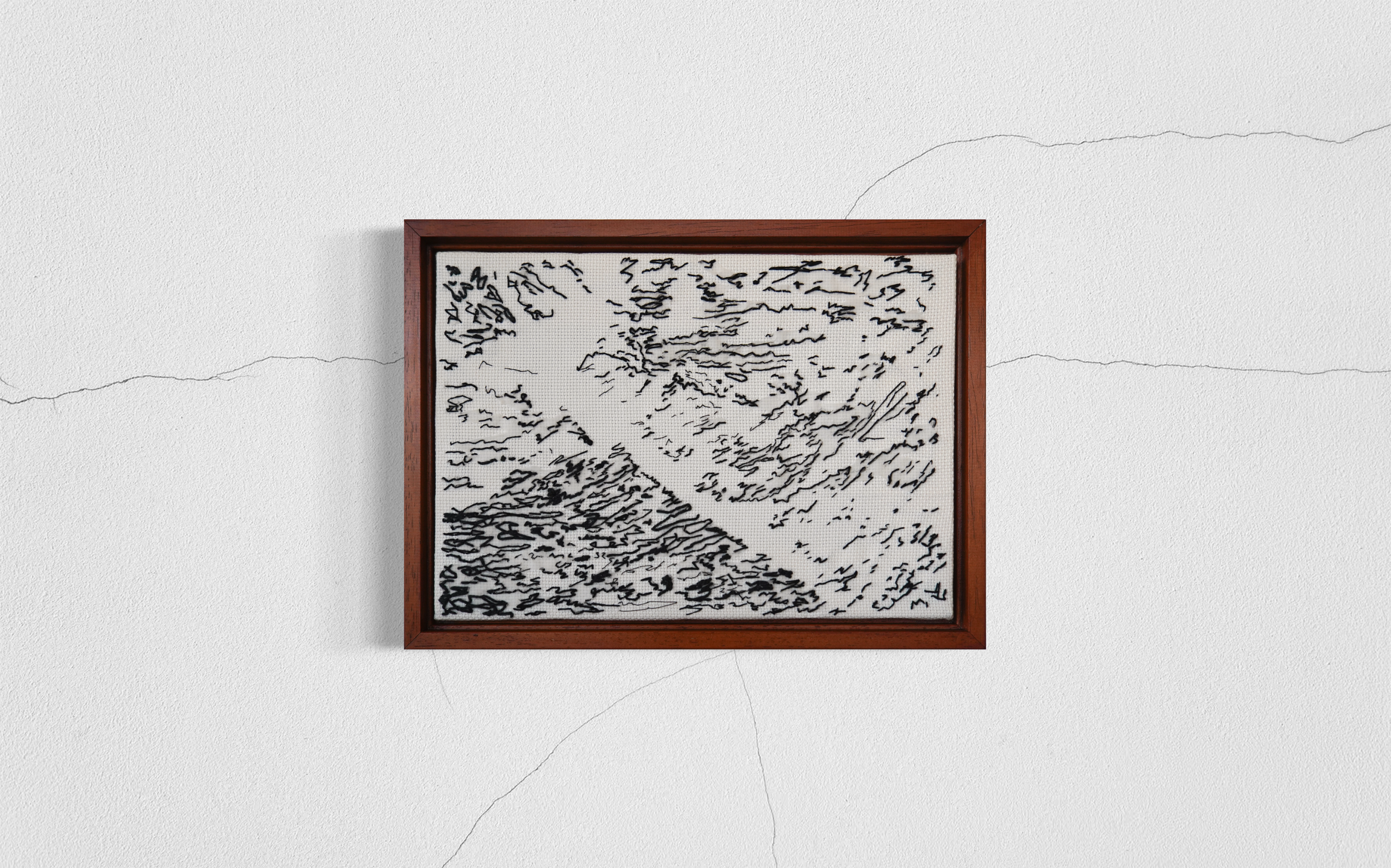 A quiet textile study of Arctic fragility. Minimal marks hold the textures of a place where stillness is an active state of survival.